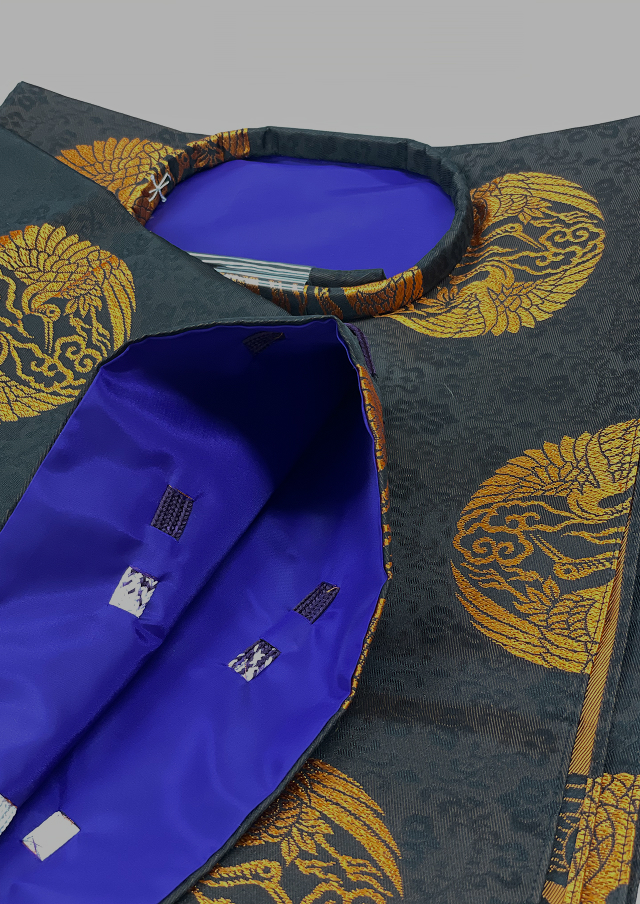 神職さまが着用される白衣・袴などの常装から、祭典用の正服・礼服に至るまで、装束全般を取り扱っております。また、賽銭箱や御簾、三方といった調度品・神具の製作販売も合わせて行っております。